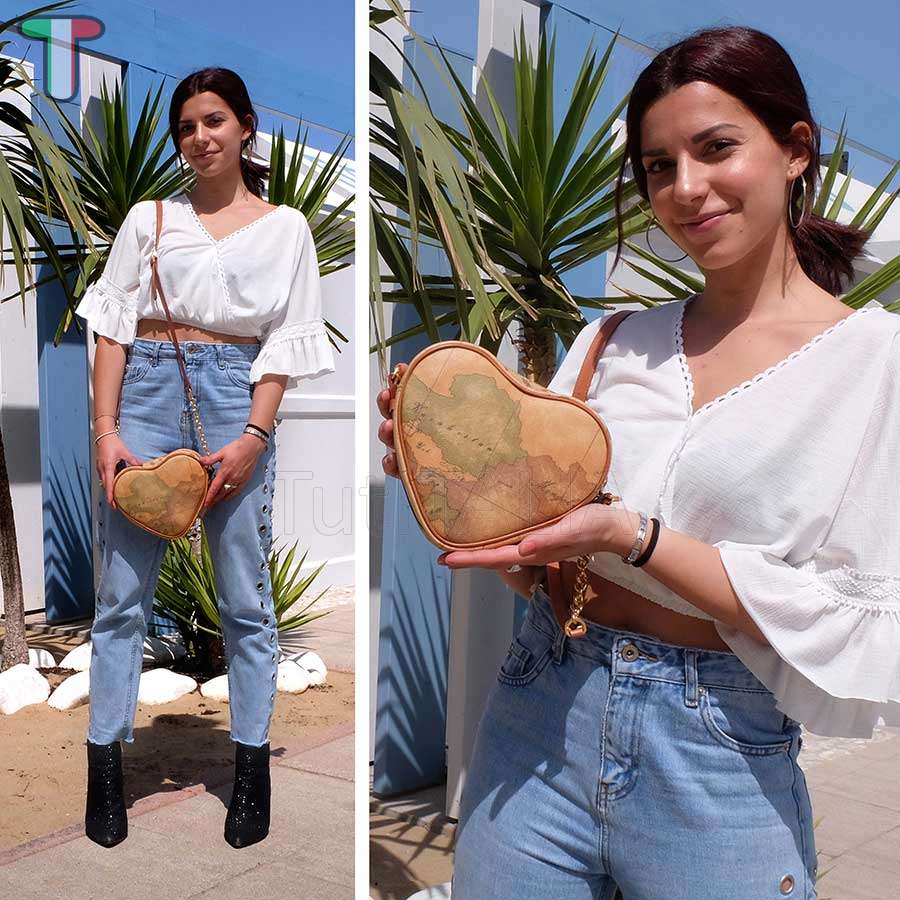 Functionality: women's bag . Small Geo Classic print fabric heart crossbody bag