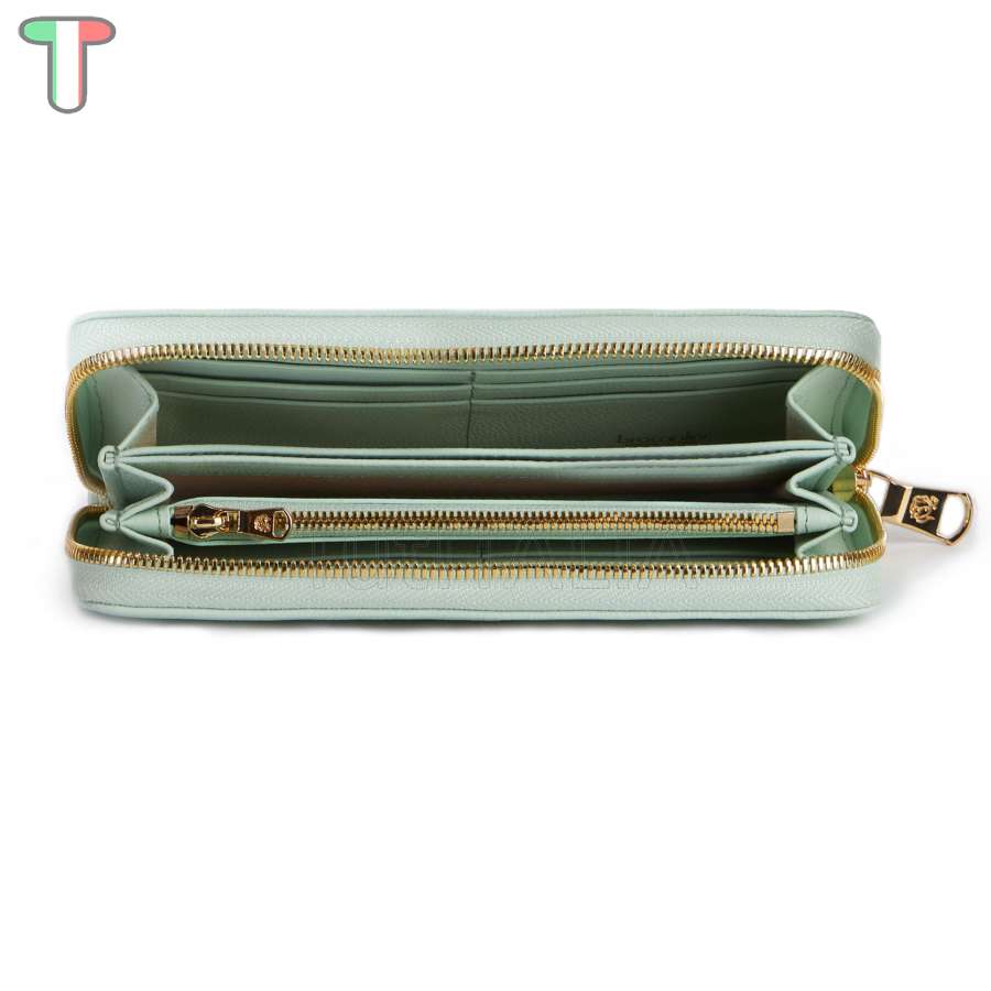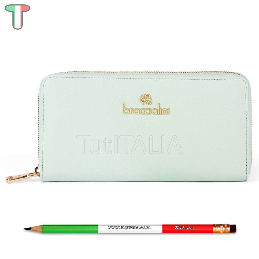 Collection 2024 SS.  Manufacturer: Braccialini.  Line: Basic.  Functionality: women's wallet zip around.  Material: genuine leather.  Color: green.  Warranty 2 years.  Dimensions: 19.5x10x2.5 cm.  Weight: 0.35 kg.