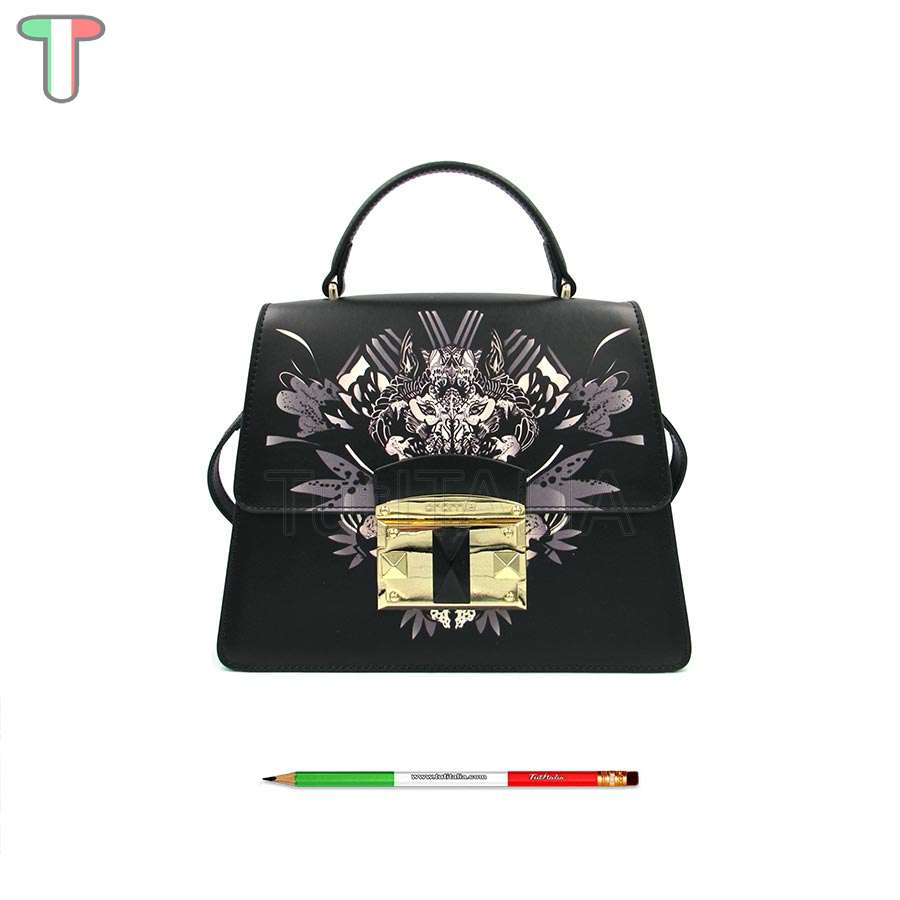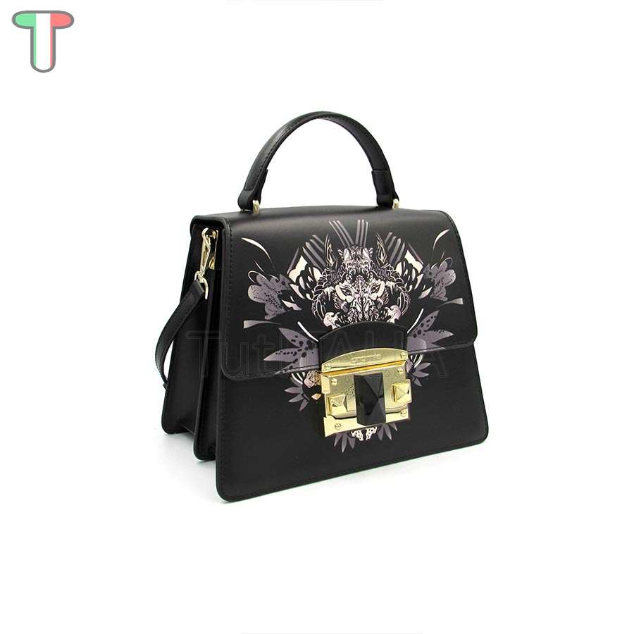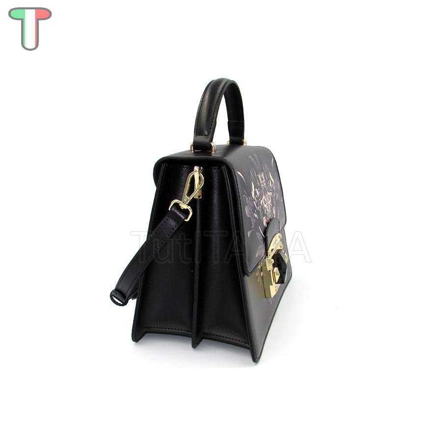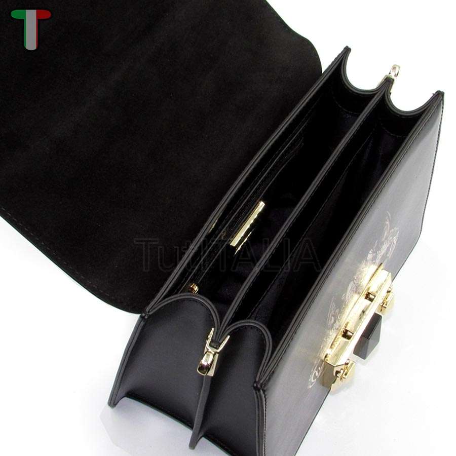 Collection 2017-2018 FW.  Manufacturer: Cromia.  Functionality: women's bag.  Material: genuine leather.  Color: black.  Warranty 2 years.  Included shoulder strap.  Dimensions: 24x19x11.5 cm.  Height of handle: 10 cm.  Weight: 0.73 kg.
