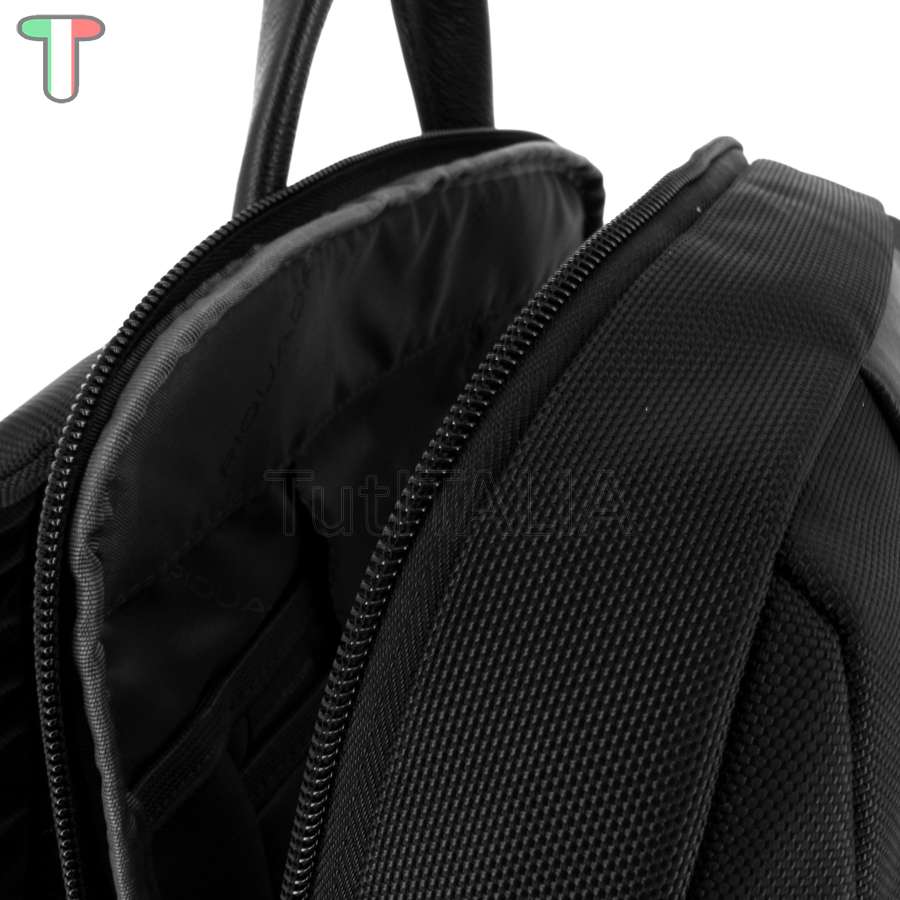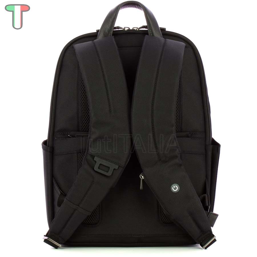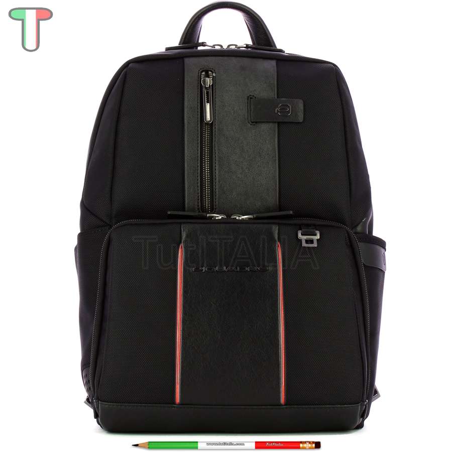 Manufacturer: Piquadro.  Functionality: backpack.  Material: genuine leather.  100% PA Econyl regenerated.  Color: black.  Warranty 2 years.  Dimensions: 29x39x15 cm.  Weight: 1.1 kg.