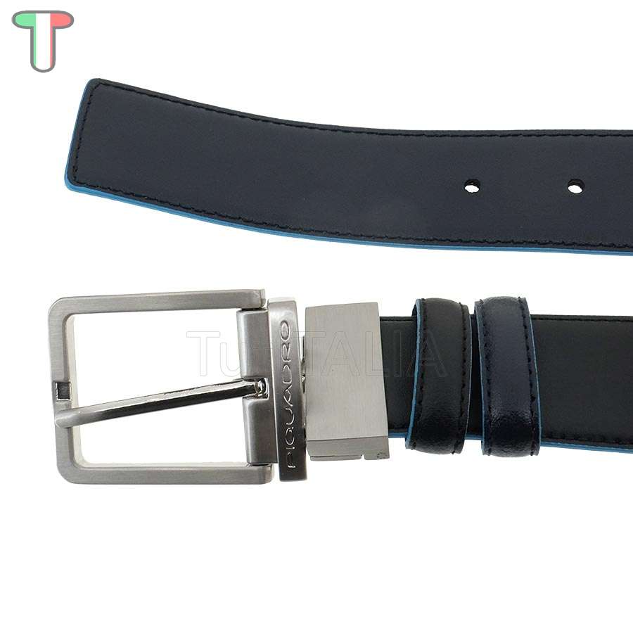 Collection Blue Square.  Manufacturer: Piquadro.  Functionality: men's reversible belt.  Material: genuine leather.  Color: black.  dark blue.  Warranty 2 years.  Dimensions: 127x3.5x0.3 cm.  Weight: 0.2 kg.