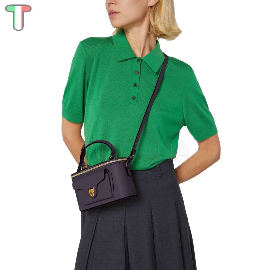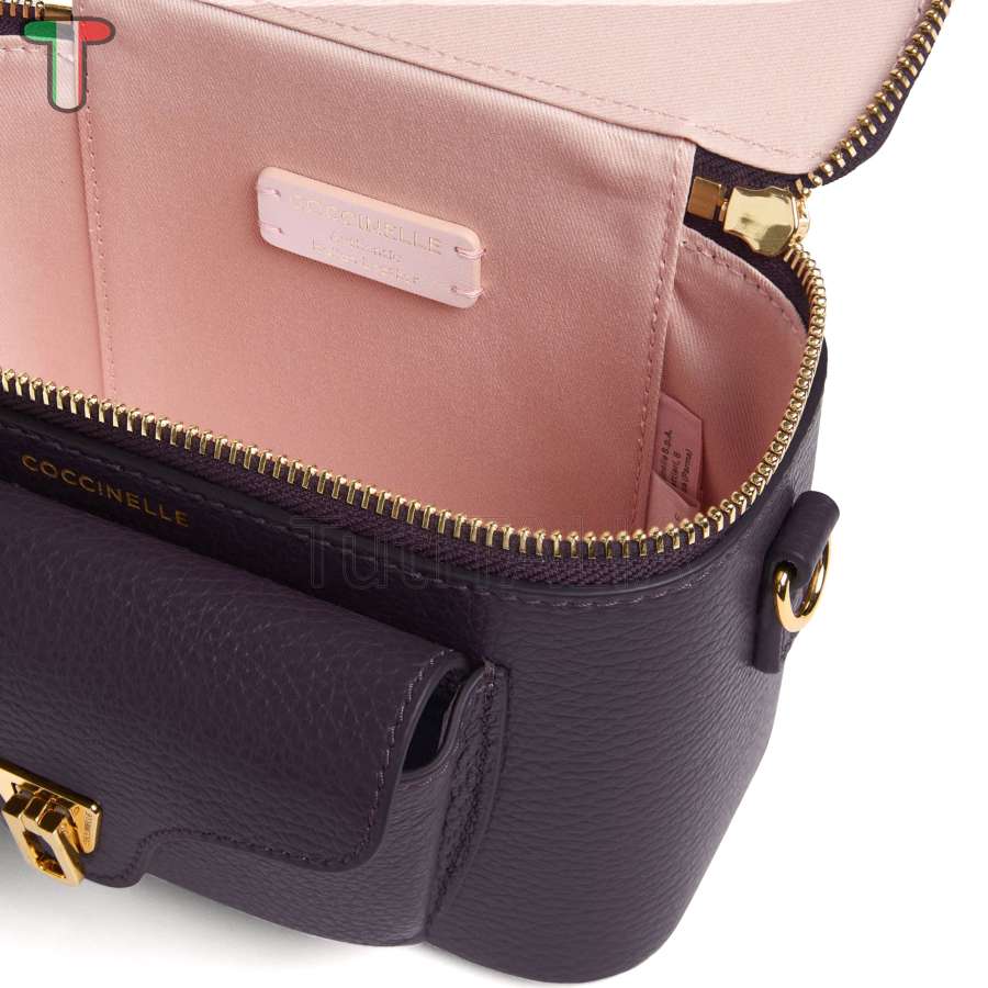 Collection 2025 FW.  Manufacturer: Coccinelle.  Functionality: mini bag.  Material: genuine leather.  Color: violet.  Warranty 2 years.  Shoulder strap adjustable.  Dimensions: 18x12x8 cm.  Height of handle: 13 cm.  Weight: 0.5 kg.